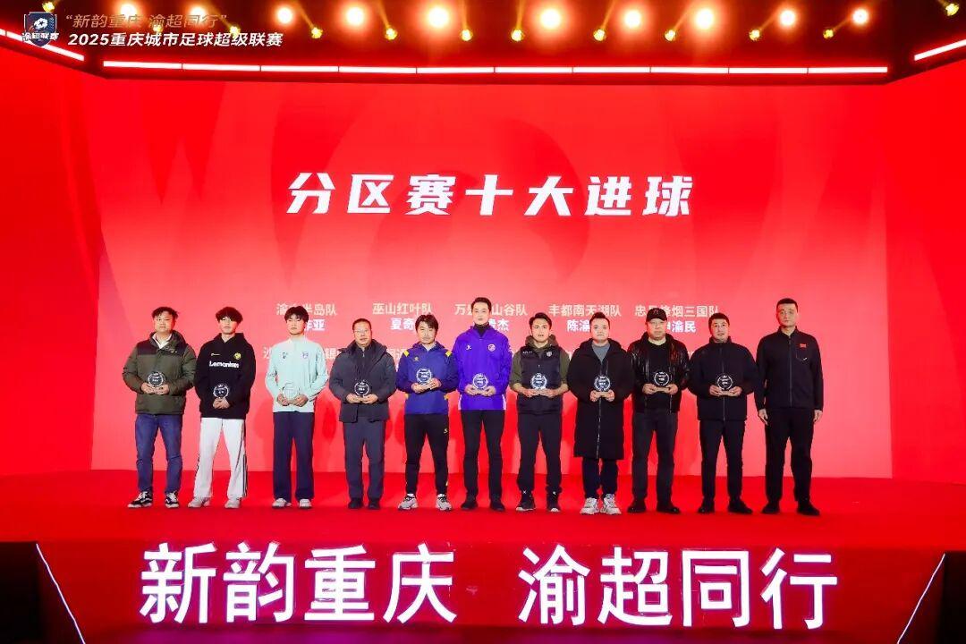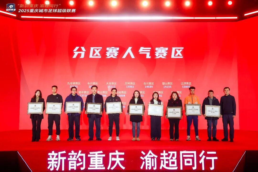 当日的抽签仪式亮点纷呈,现场不仅播放了渝超分区赛高光回顾视频,重温各支队伍在绿茵场上的拼搏瞬间与热血时刻,更设置了重磅颁奖环节,集中颁发多项荣誉,以此致敬本赛季以来默默付出的球员、教练及所有幕后工作者。值得每一位江津球迷骄傲的是,江津润通动力队凭借分区赛的亮眼表现,成功斩获“分区赛十大进球”“分区赛人气赛区”“分区赛优秀球迷组织”三项大奖,这份荣誉既是对球队实力的高度肯定,更为即将开启的总决赛征程注入了强劲士气。